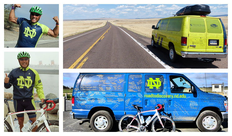 Jersey and van wrap designs for the yearly, cross-country bike trip taken by Notre Dame's Dean of the College of Science, Gregory Crawford, to raise awareness for Niemann-Pick Type C disease, photos by Peter Doran