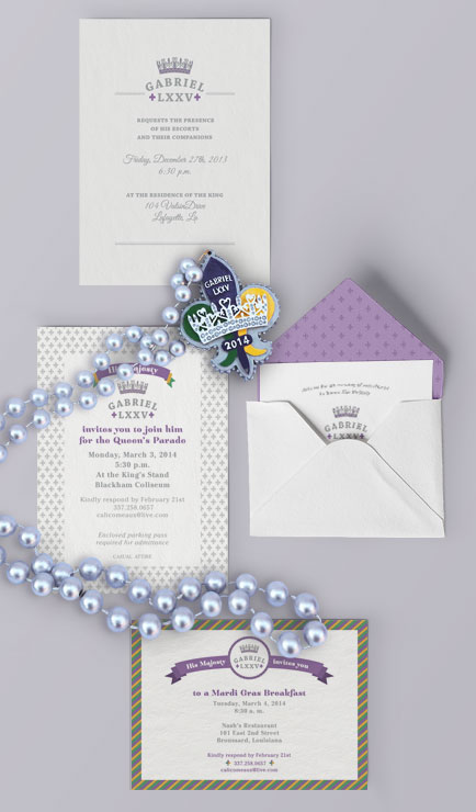 All personal invitations for King Gabriel LXXV's events, medallion design, cup, and t-shirt design