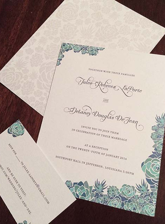 Hand-lettered save the date cards and invitation package for Patrick + Marie's wedding letterpressed by Rohner Letterpress, Chicago, evelope calligraphy by Mary Catherine Dunphy, and photographed by Catherine Guidry